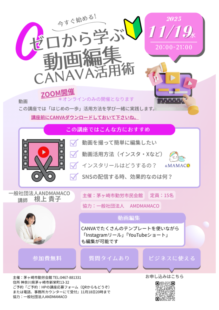 講座名 | ゼロから学ぶ動画編集“CANVA活用術” |