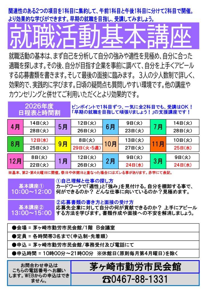 「就職活動基本講座」適性・適職・応募書類・面接の基本を学びます