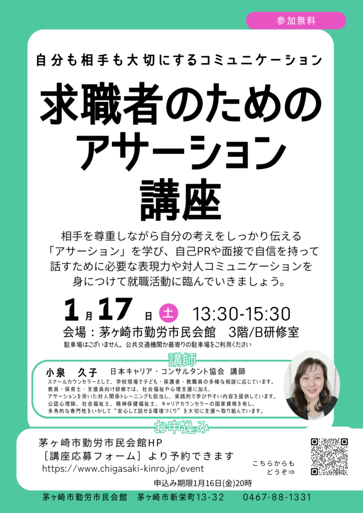 相手を尊重しながら自分の考えをしっかりと伝える「アサーション」を学び、自己PRや面接で自信を持って話すために必要な表現力や対人コミュニケーション力を身につけて就職活動に臨んでいきましょう。