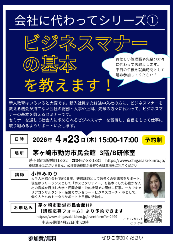 新人教育はいろいろと大変です。新入社員または途中入社の方に、ビジネスマナーを教える機会が持てない会社の総務・人事や上司、先輩の方々に代わって、ビジネスマナーの基本を教えるセミナーです。